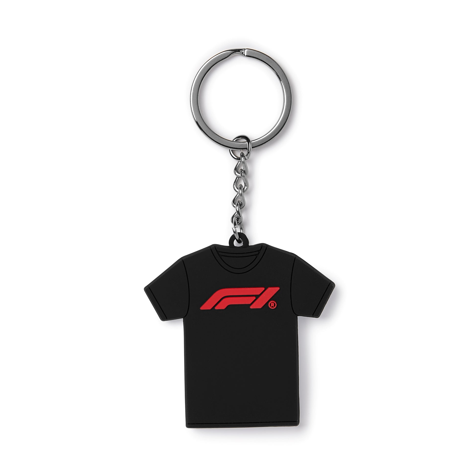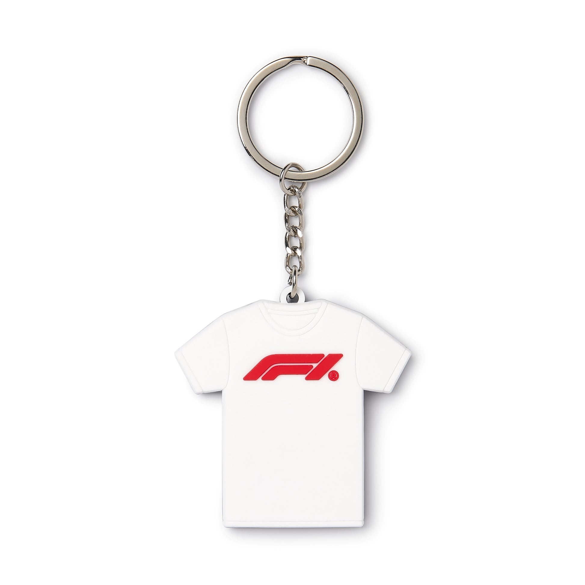 Miniature 100 Acrylic double sided F1 logo T-Shirt keyring. Give your keys some fun F1 style.