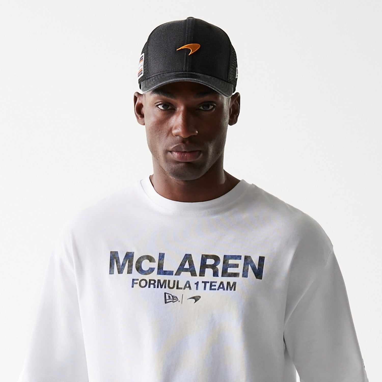 McLaren F1 Team wordmark tee. Casual vibe tee shirt for the McLaren F1 fan. Available in black, white or stone.