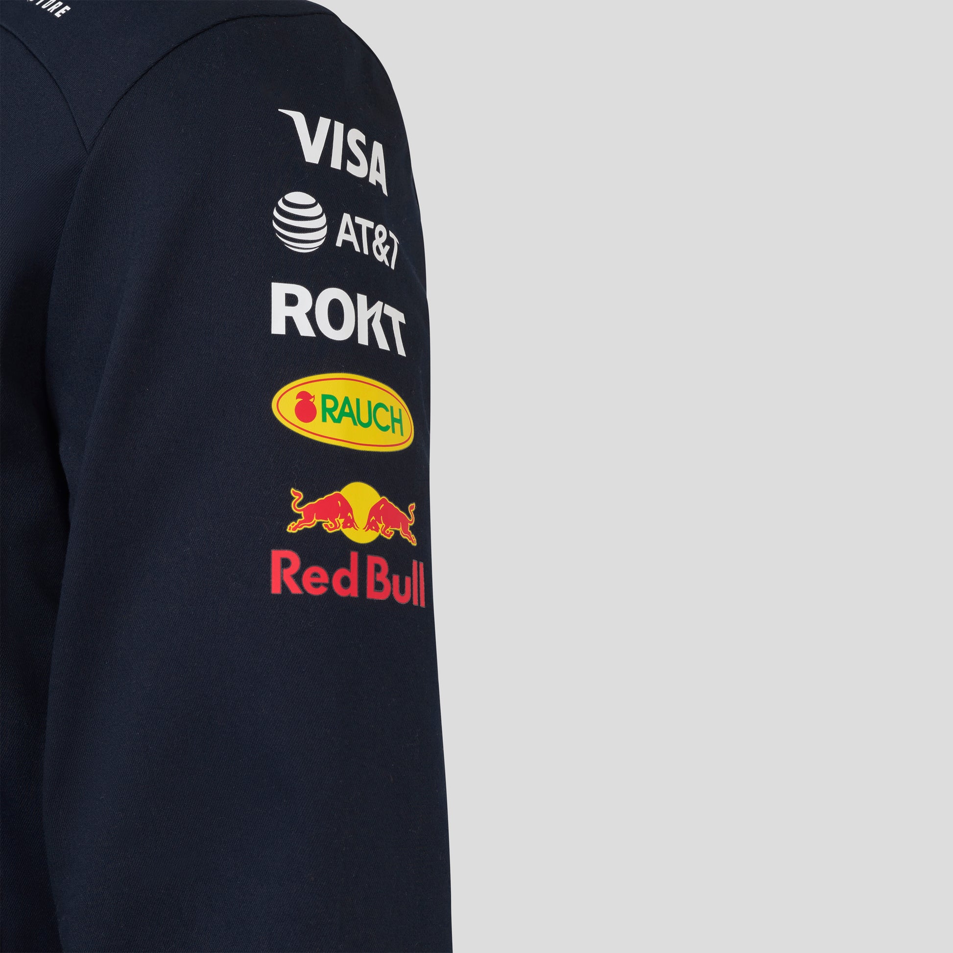 Adults Oracle Red Bull Bomber Jacket. Unisex bomber jacket featuring the Red Bull team banner, ORBR team Logo and team sponsors. The back of the garment features the iconic charging Bulls logo. In night sky