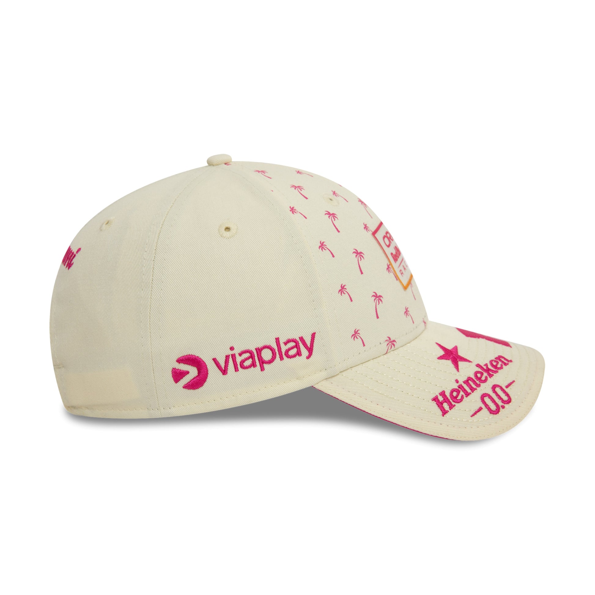 Max Verstappen Miami Grand Prix Cap. Oracle Red Bull Racing logo, driver number, Palm Tree graphic print. Metal d-ring closure sits beneath a Miami graphic on the back. Made by and featuring the New Era flag.