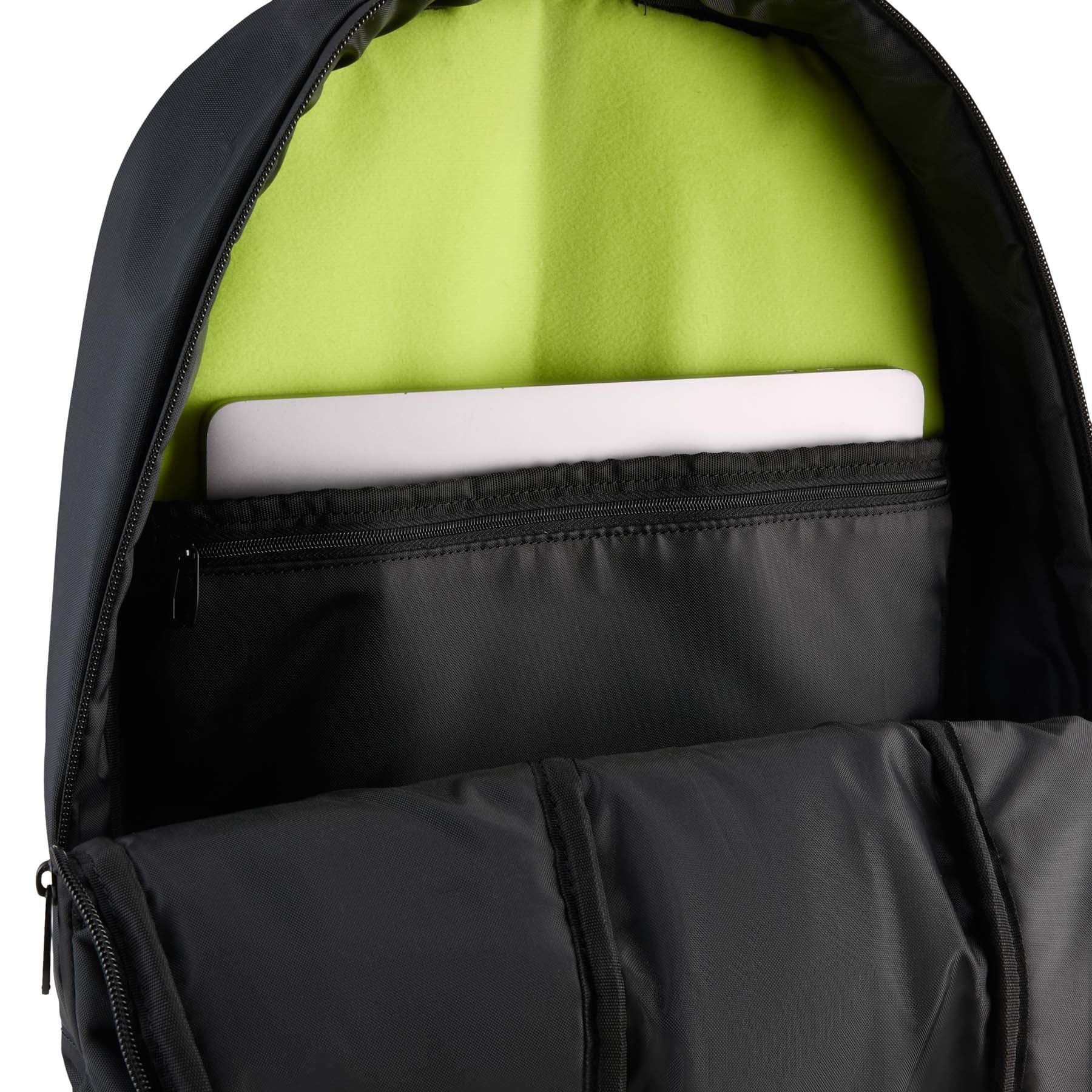 The Aston Martin F1 Backpack Unisex - Black combines practical everyday storage with sleek Formula 1 style.