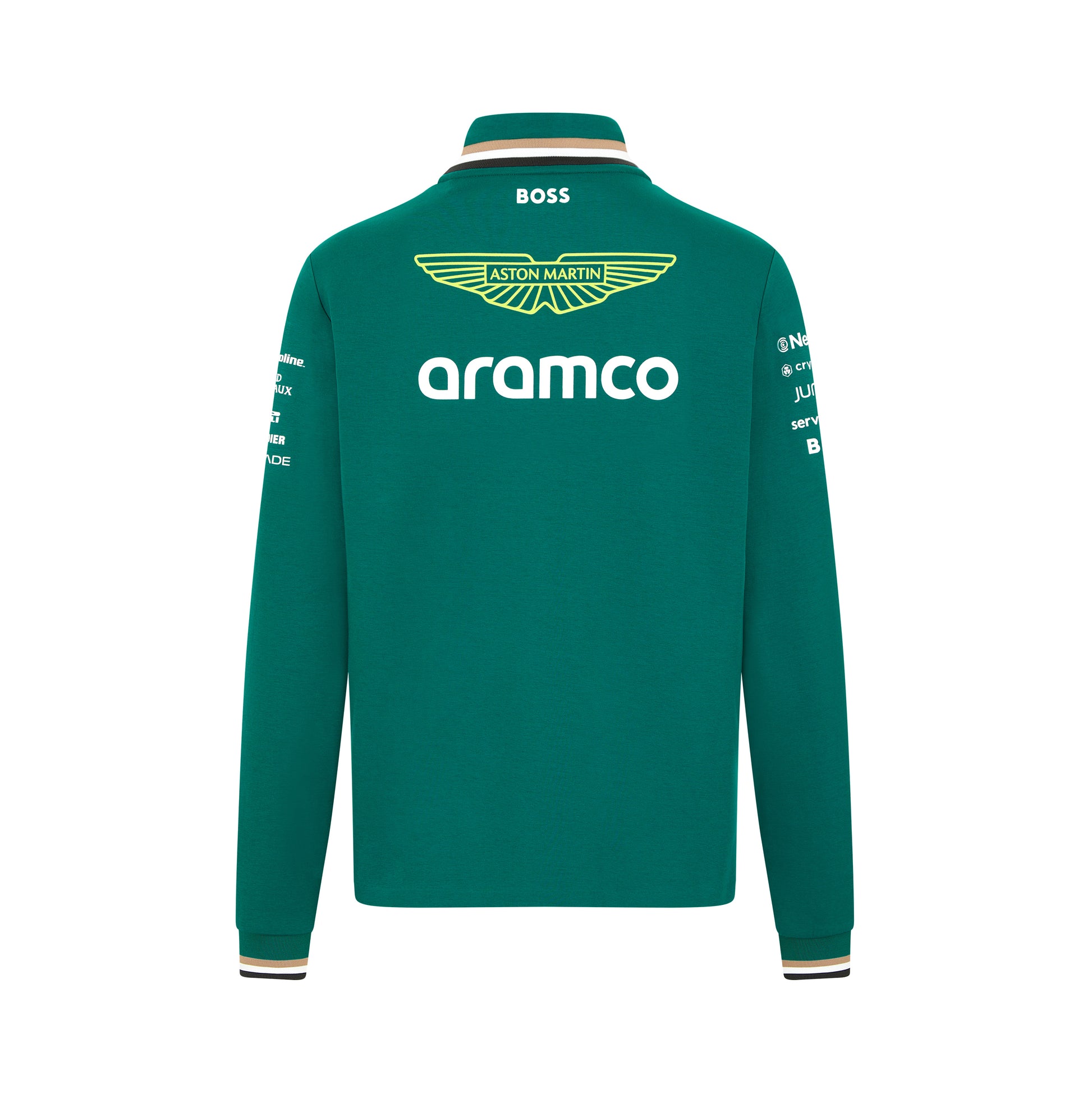 One of our favourites. The Aston Martin Quarter Zip can be worn smart or casual. Made from an Organic Cotton, Polyester and Elastine mix, its comfortable all day long. Boss striping on the collar and Cuffs compliments the Aston Martin F1 Team and Partner Logos. Concealed zip pockets are a useful addition. BOSS branded zip pullers gives this a very premium feel. Perfect quarter zip for Alonso, Stroll and Aston Martin fans