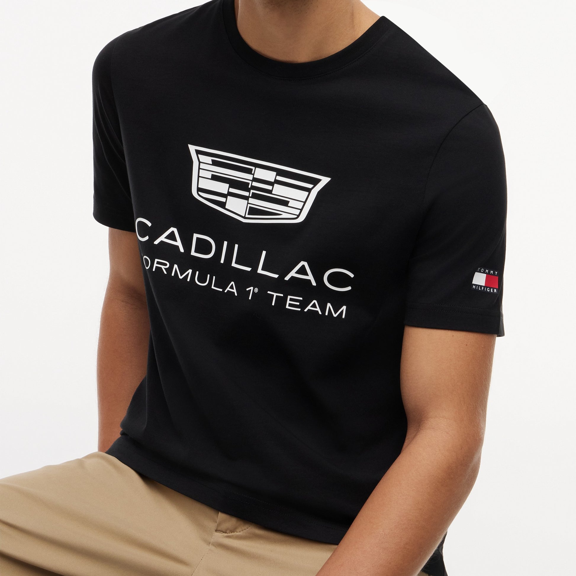 Support the Cadillac Formula 1 Team in bold style with the Cadillac F1 x Tommy Hilfiger Big Logo Tee for Men in sleek black. This premium men’s T-shirt combines iconic American motorsport branding with classic Tommy Hilfiger design.