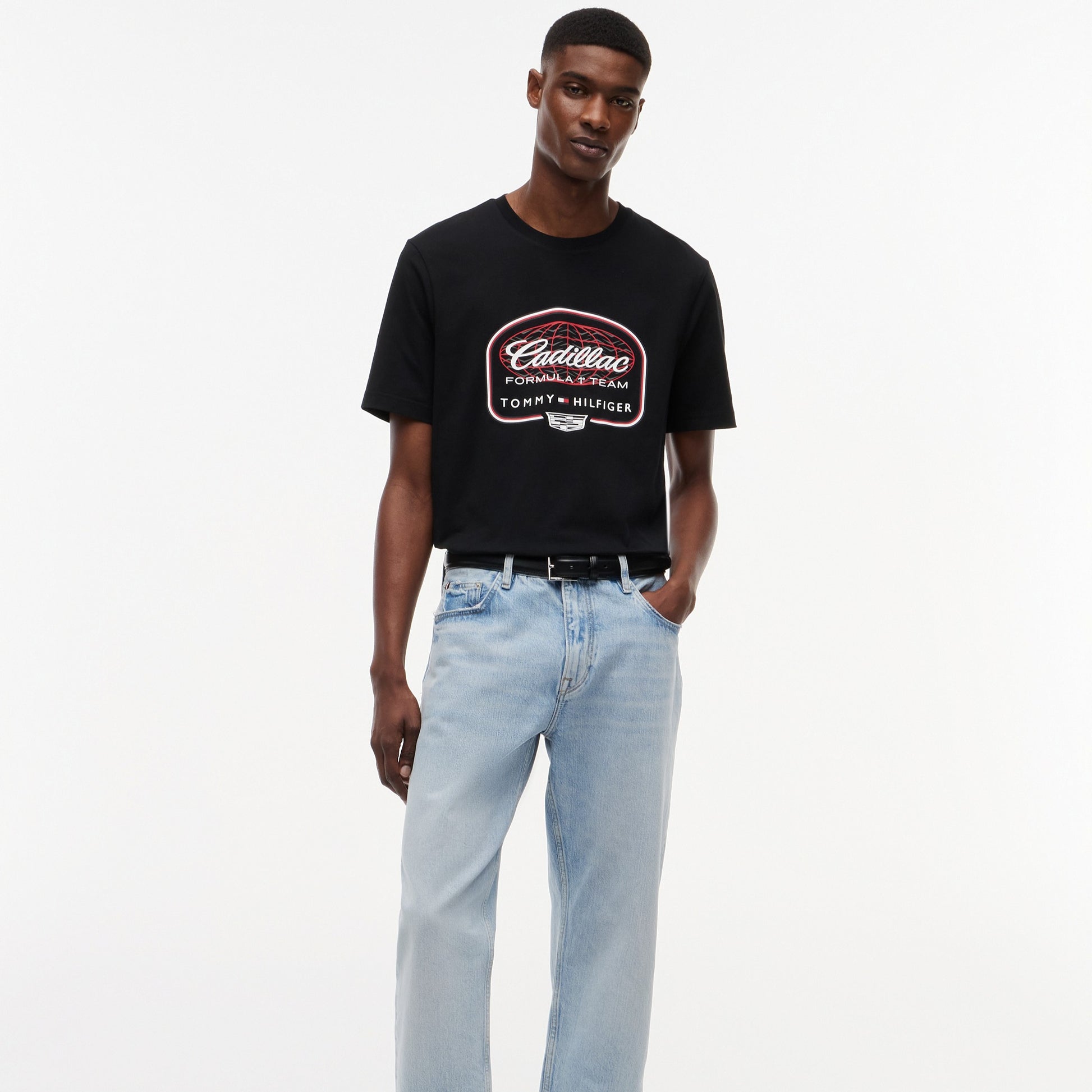 Show your racing passion with the Cadillac F1 x Tommy Hilfiger Graphic Tee for Men in sleek black. This premium men’s T‑shirt blends bold American motorsport‑inspired graphics with iconic Tommy Hilfiger x Cadillac Formula 1 Team branding for standout casual style.
