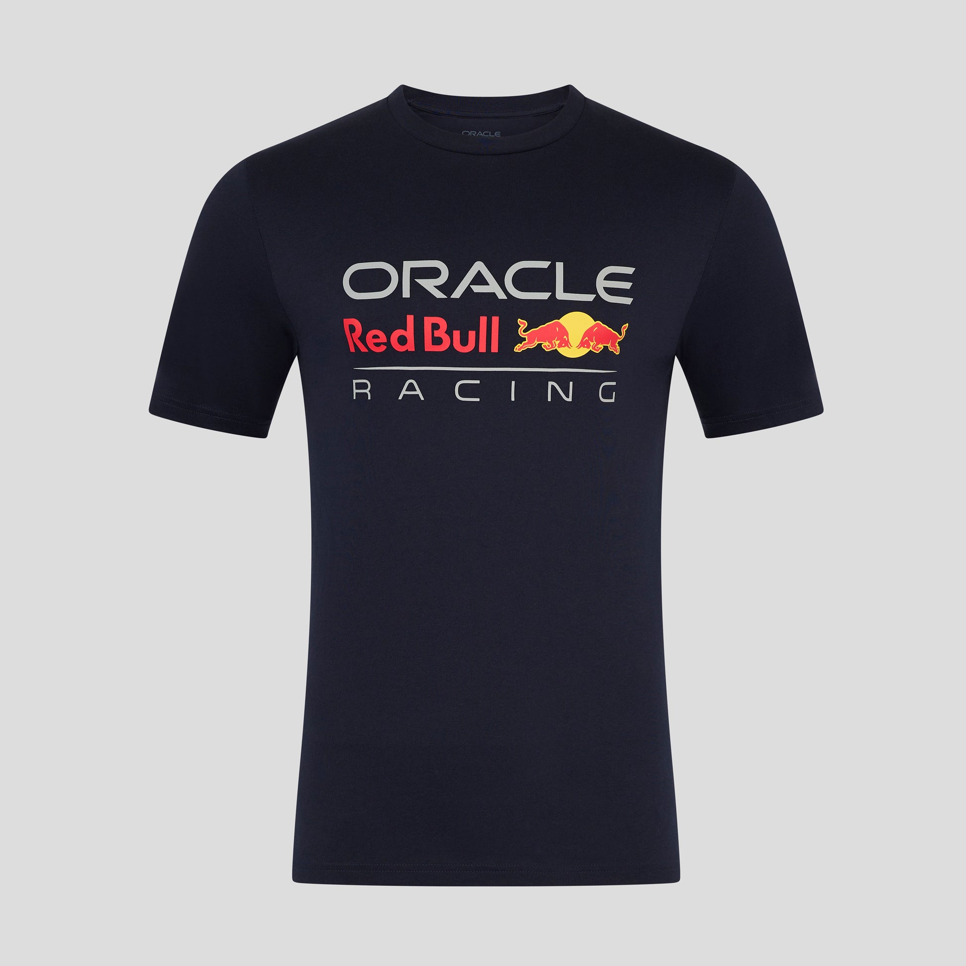 Oracle Red Bull Adults Large Logo T-shirt. ORBR Red Bull unisex tee featuring large Oracle RedBull racing logo. Perfect for the RedBull Formula 1 fan. Available in Night Sky, Brilliant White, Weathervane Grey & Skipper Blue