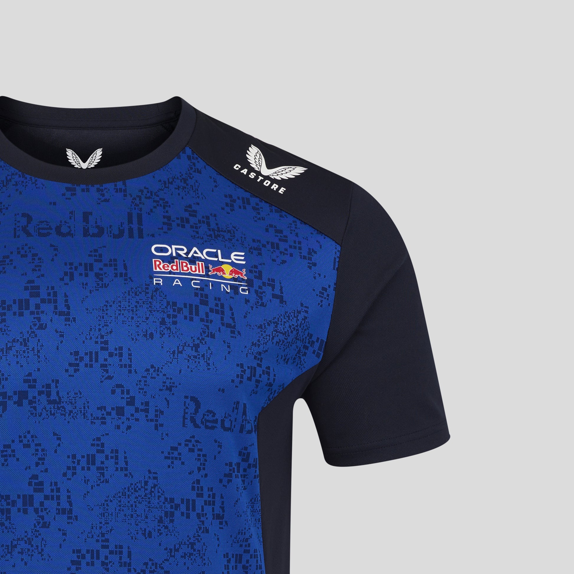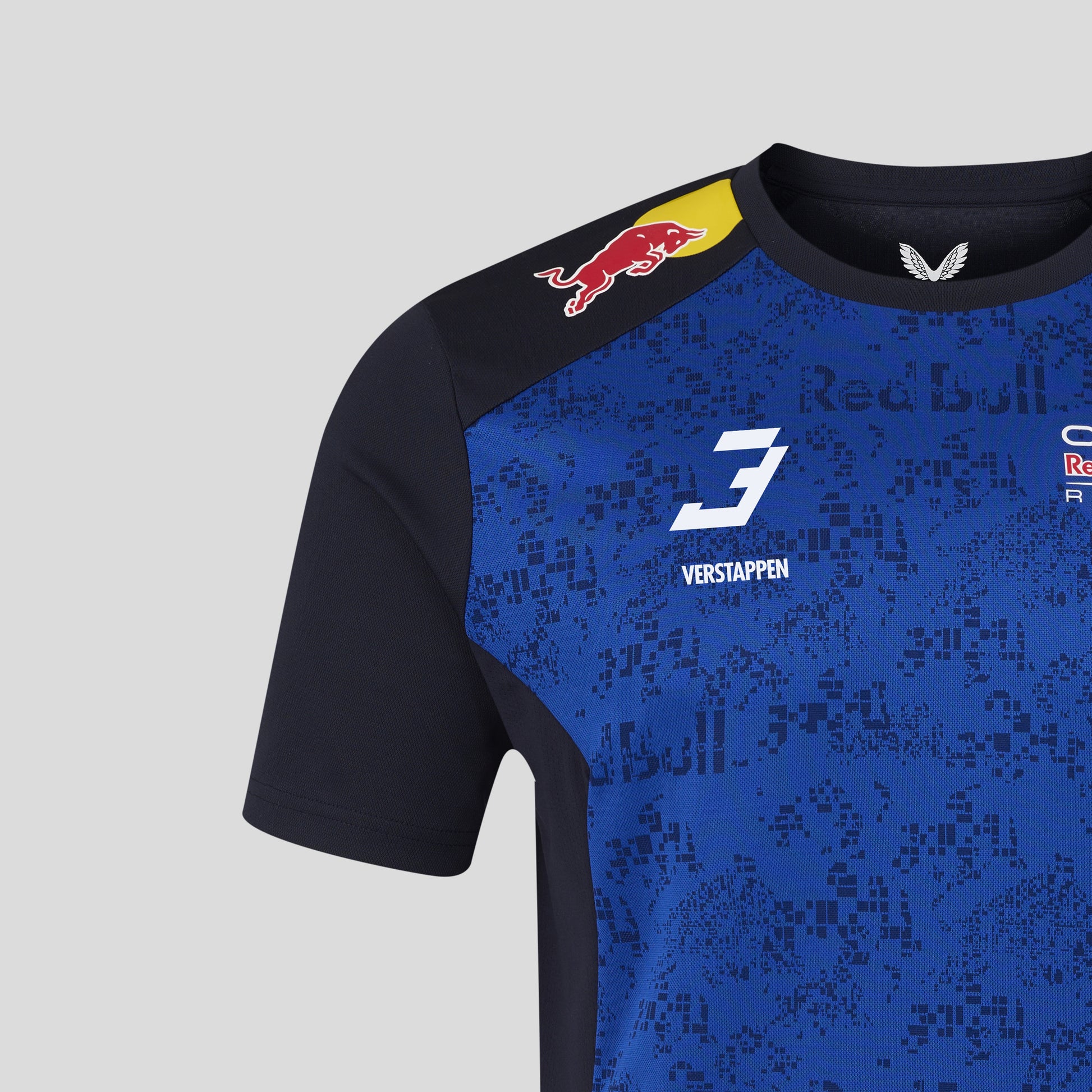 • Heat transfer brand, sponsor and Castore logos at chest, sleeves, shoulders, collar and upper back